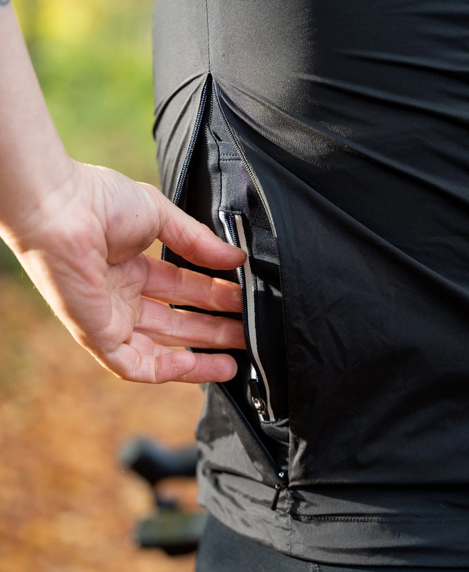 A lightweight gilet, full of features. Easy to pack away into the smallest of rear pockets, this gilet has windproof and water resistant properties making it ideal to pull on when the elements start to change or for those early starts.
